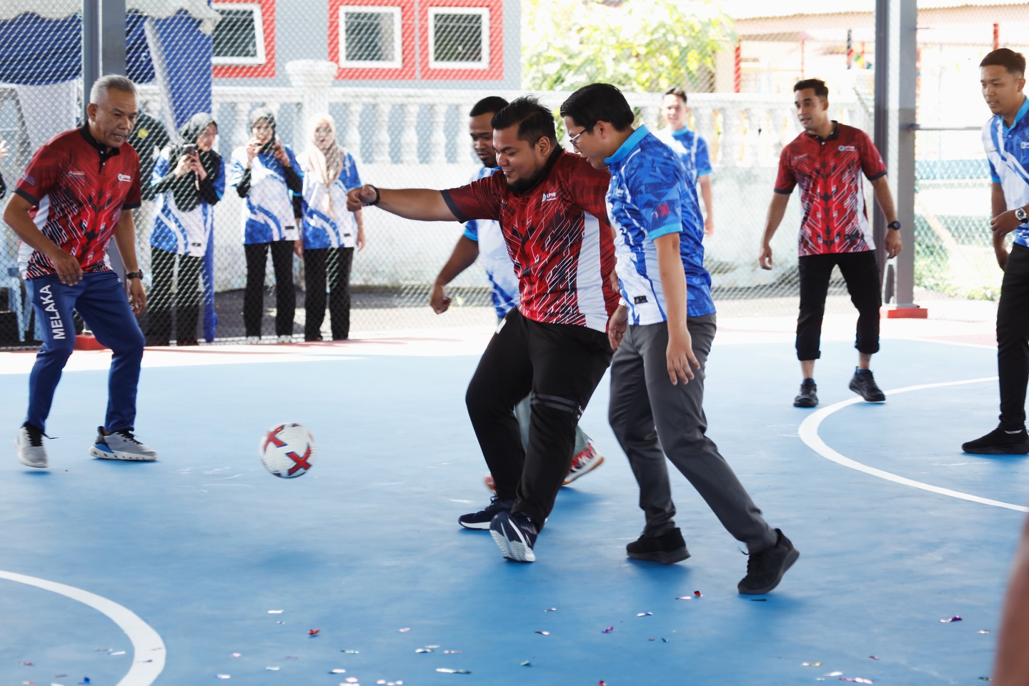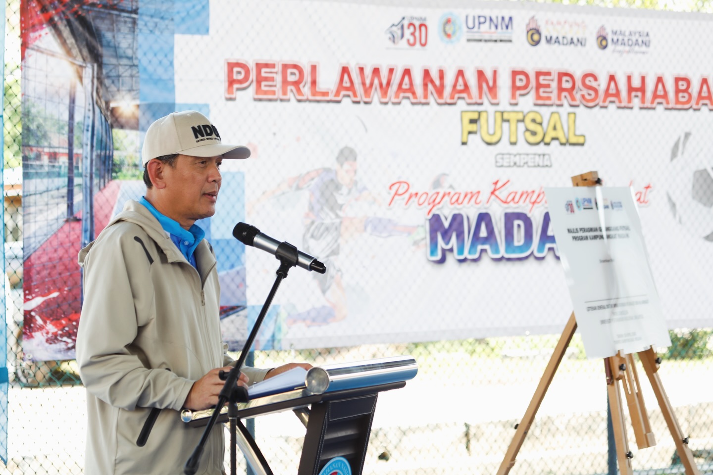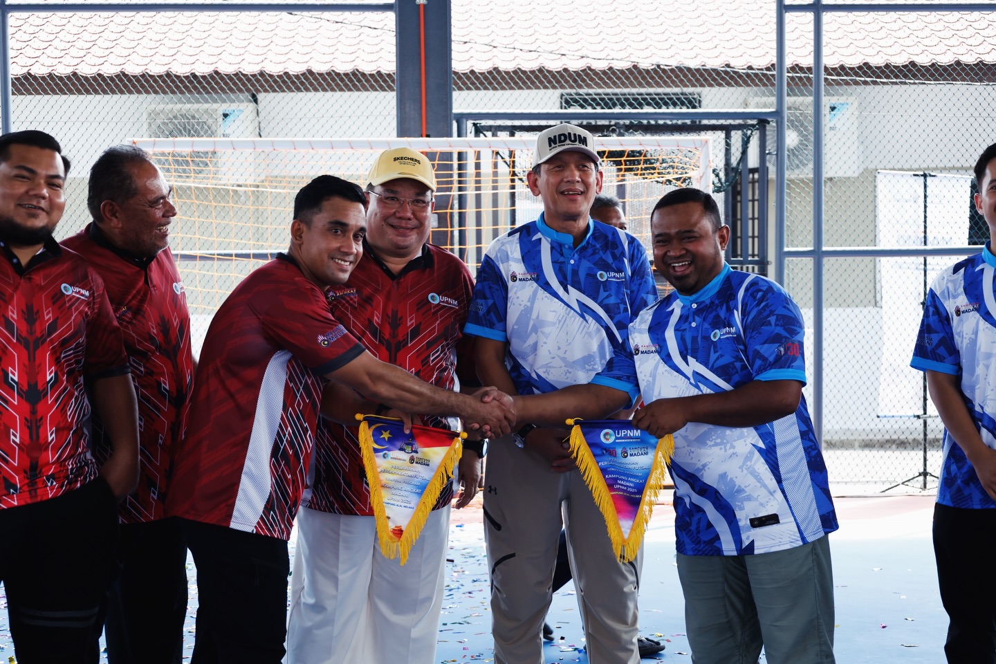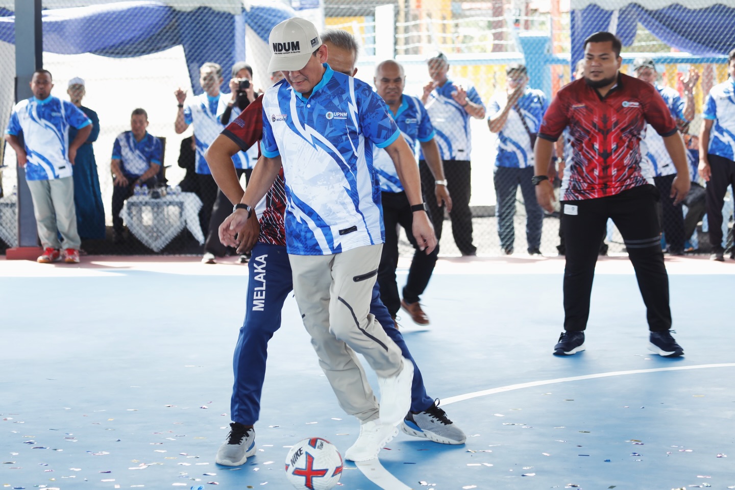 10 APRIL 2026 | MELAKA: Melalui Program Kampung Angkat MADANI, UPNM merealisasikan gelanggang futsal di Kampung Alai sebagai ruang baharu yang menghidupkan komuniti setempat. Gelanggang ini hari ini rasmi digunakan, disempurnakan oleh Lt Jen Datuk Wira Arman Rumaizi bin Hj Ahmad, Naib Canselor UPNM. Perlawanan persahabatan antara JPKK Kg. Alai dan UPNM membuka tirai penggunaan gelanggang, dengan keputusan berpihak kepada tuan rumah.